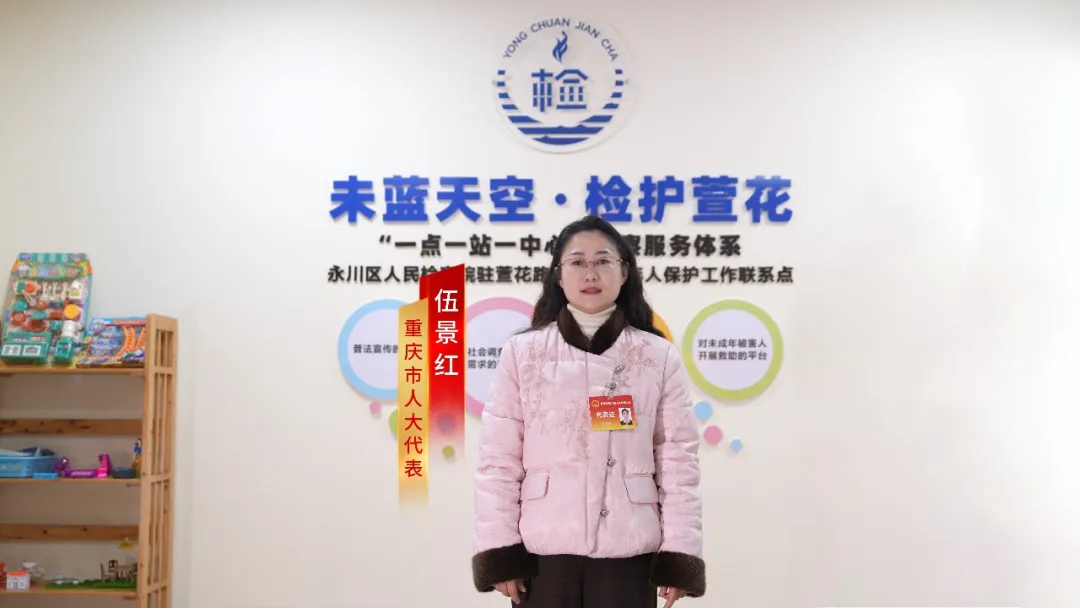 大家好,我叫伍景红,重庆市第六届人大代表、永川区胜利路街道萱花路社区党委书记。萱花路社区小区多、居民多,如何让“一老一小”在家门口享受到便捷又暖心的法律服务,是我一直牵挂的事。