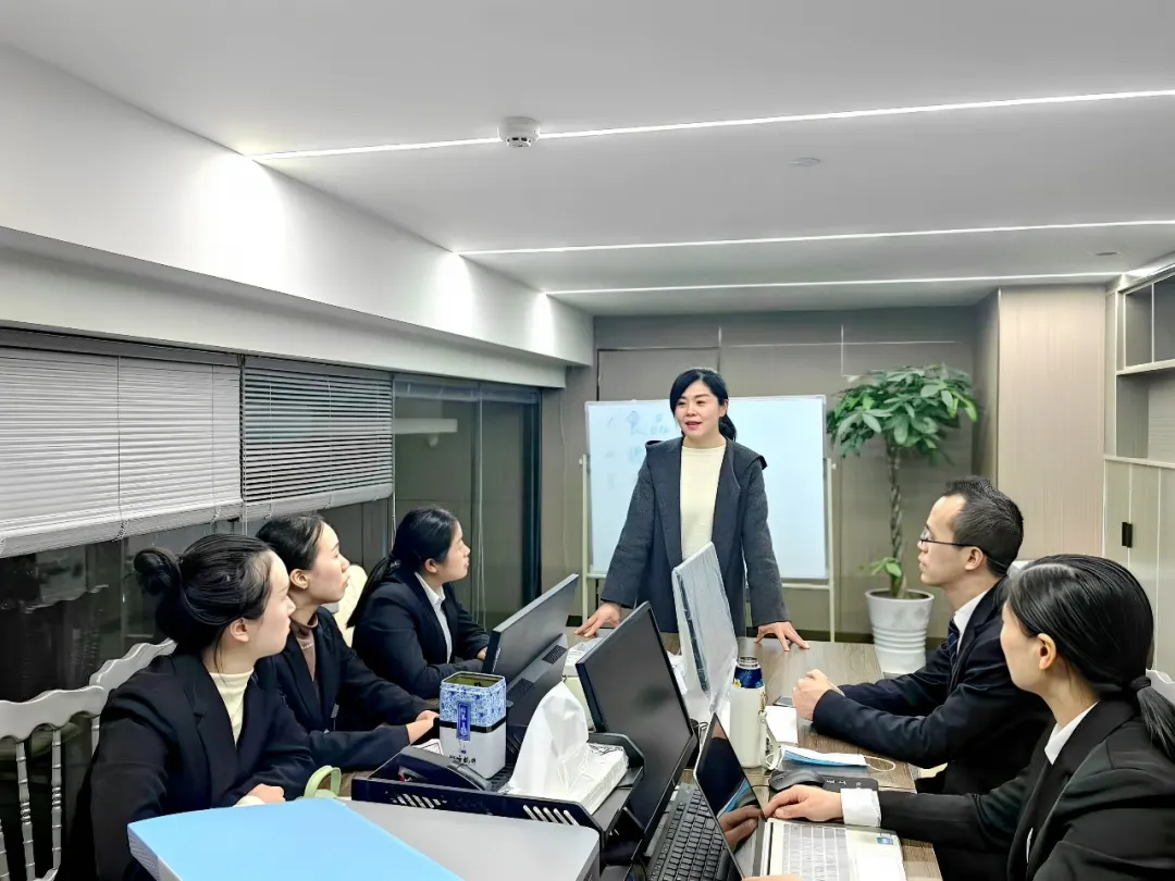 何苗(右三)为酒店员工讲解精细化服务管理与规范运营。