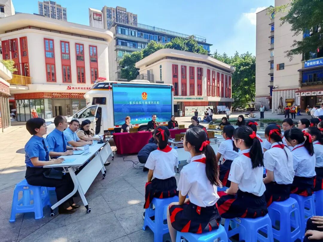 不止于此,为进一步扩大法治宣传效果,让《未成年人文身治理工作办法》中“未成年人不能文身”的法律规定深入人心,2025年6月,九龙坡区检察院联合区法院、区消费者协会、区市场监管局,把这起案件搬进社区,在谢家湾片区开展“车载法庭+以案释法”专项普法活动。