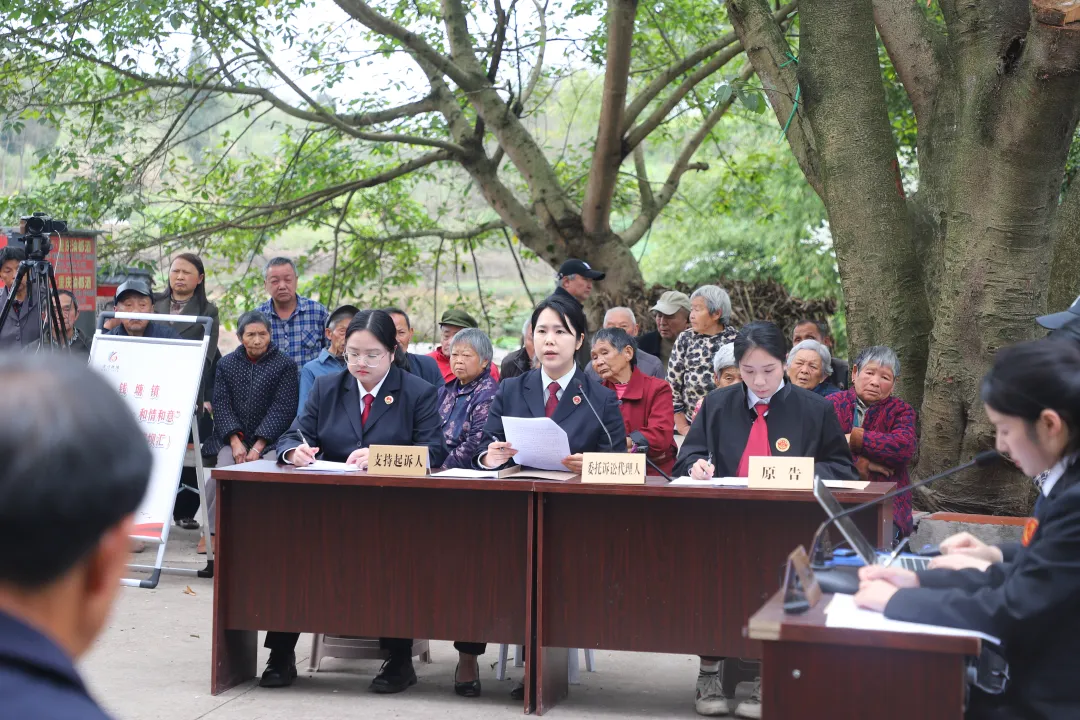 “老人把养老钱交给大女儿、三女儿保管,两个人拿不出账来,兄妹就将赡养费的事推来推去。”今年1月,伍芷君走访得知95岁的陈婆婆与儿女因赡养问题产生纠纷,而村干部的一句话“村里这样的事不止一起”,更让她心头一紧。为此,合川区检察院决定通过支持起诉为老人“撑腰”,检法两家一商量,干脆把法庭搬到院坝,实现“办理一案、教育一片”。