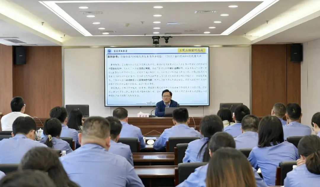 本次沙龙聚焦商业秘密保护议题,特邀重庆理工大学副教授娄必县授课,以“一碗小面”为切入点,围绕商业秘密界定、构成、保护路径等七大核心方面,为干警及辖区知产办工作人员提供清晰办案指引与知识防护方案。