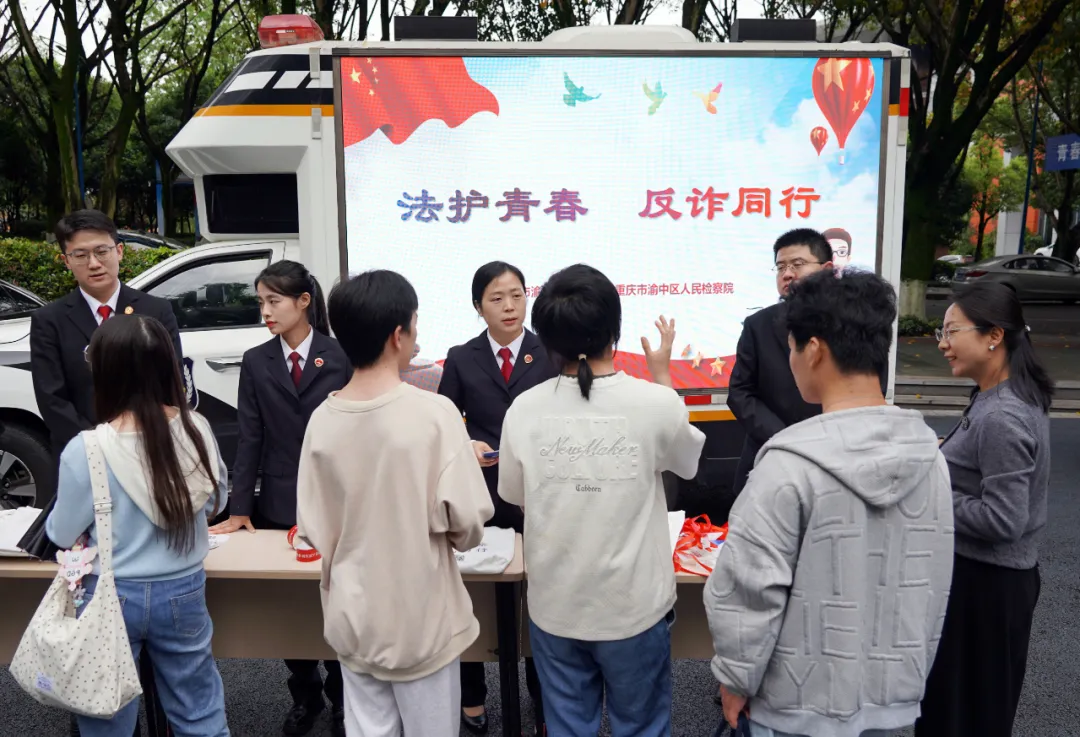 “本案被告为何被认定为从犯?”“掩饰、隐瞒犯罪所得罪、帮信罪与诈骗罪如何区分?”庭后,检察官张姗在校园内的法治宣传点与同学们就此次庭审进行答疑交流,把专业法律知识转化为通俗易懂的反诈常识,现场互动气氛热烈。