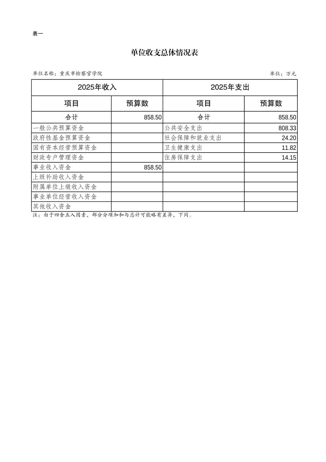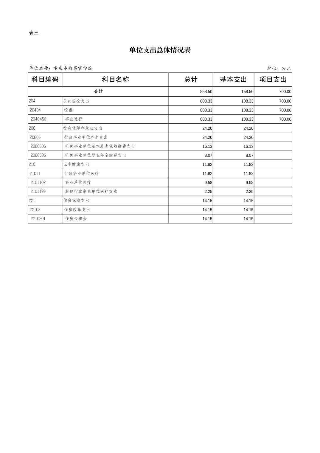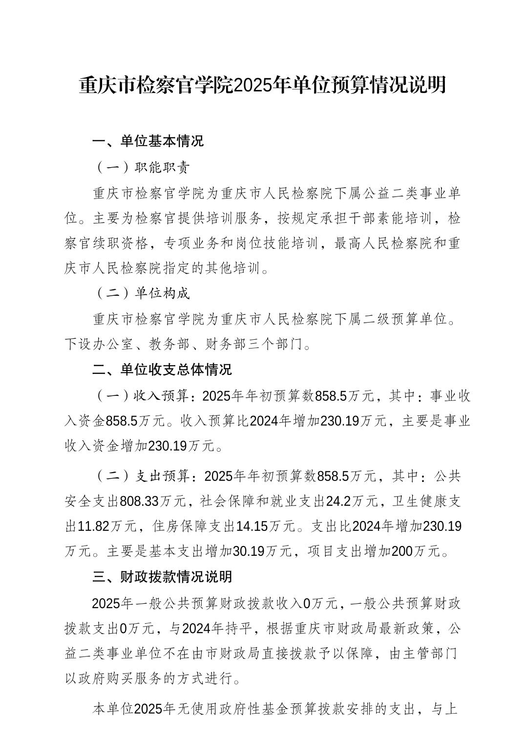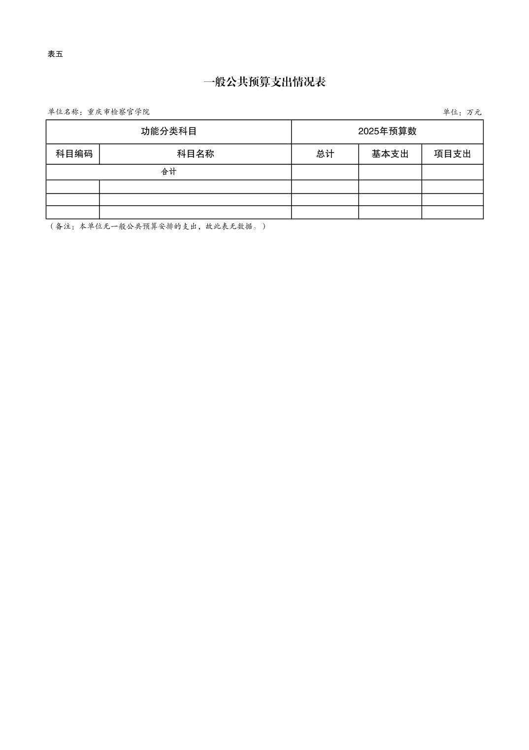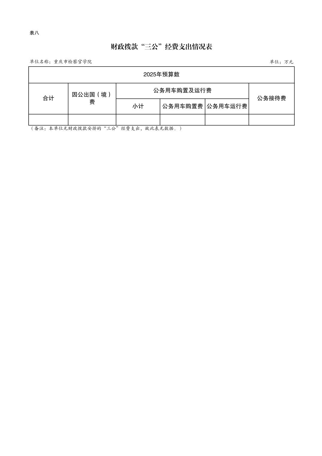 重庆市检察官学院2025年预算公开