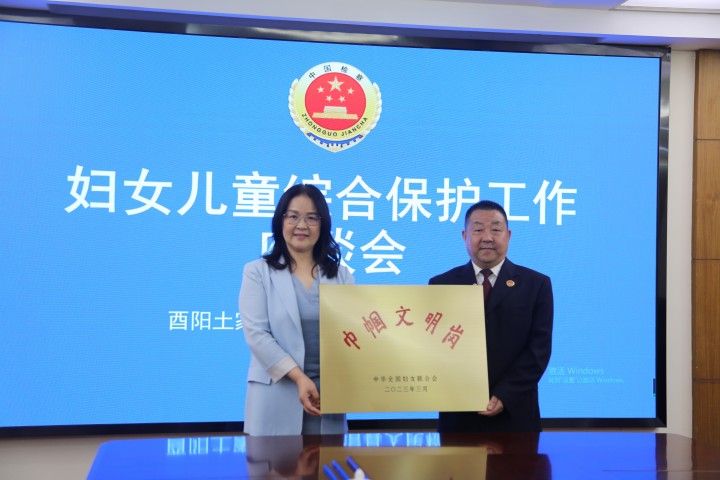 5月15日,我院与县妇联共同召开妇女儿童权益综合保护工作会。县妇联芮华主席受全国妇联委托,向我院获评2022年度“全国巾帼文明岗”的检察一部颁授奖牌。