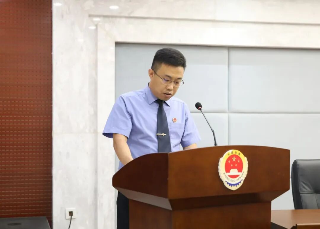 随后,4名同志分别作为院领导、中层干部、检察官、聘用制书记员代表,围绕警示教育片和典型案例进行“以案说德”“以案说纪”“以案说法”“以案说责”交流发言。
