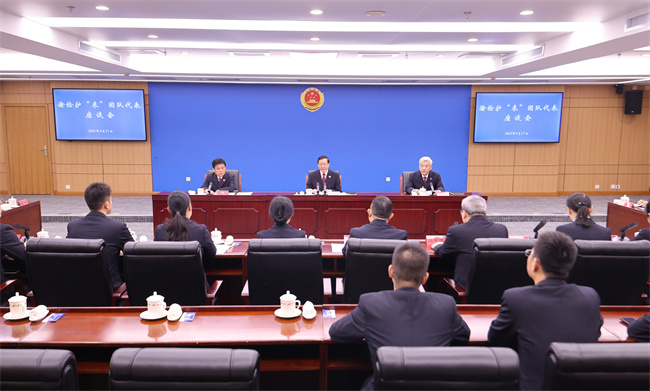 党组书记、检察长应勇与荣获“时代楷模”称号的渝检护“未”团队代表座谈。